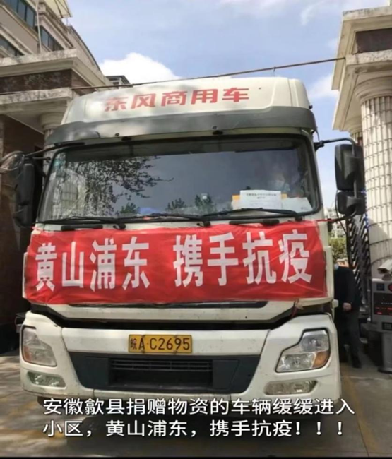 (圖為援滬生活物資車輛駛?cè)肷虾F謻|周家渡街道齊八居委會(huì)。)